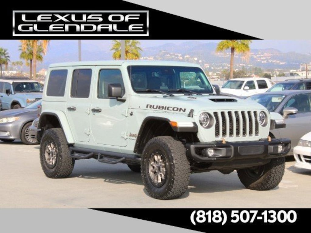 Hurry! I go to the auction on 2/17/26. Normally, Lexus of Glendale does not keep Non Lexus trade in's, but for a short time I'm available to you for a REALLY great price! This 2023 Jeep Wrangler Rubicon 392 4WD with 25,563 miles comes nicely equipped with Trailer Tow Package, Targa Roof, Heated Steering Wheel, Convertible Hardtop, Heated Front Seats, Premium Sound System, Navigation, Back Up Camera, Blind Spot Monitor, Rear Parking Aid and more! Buy now before I roll through an auto auction and you pay retail later! This Jeep passed Lexus of Glendale's comprehensive safety inspection. In an effort to save you TIME and MONEY, we have posted our VERY BEST PRICE on the internet. Hurry!! This pricing philosophy leads to our cars selling very quickly. Please call us at (800) 640-4479.